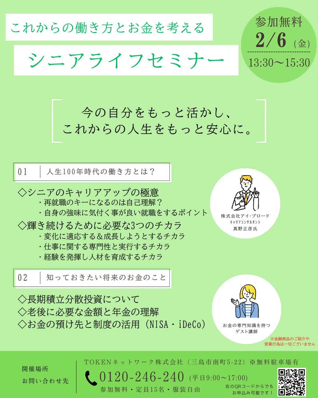 このセミナーはお仕事だけでなく、セカンドライフで気になる”おカネ”に関してもファイナンシャルプランナーの有益なお話しを聞くことが出来ます!