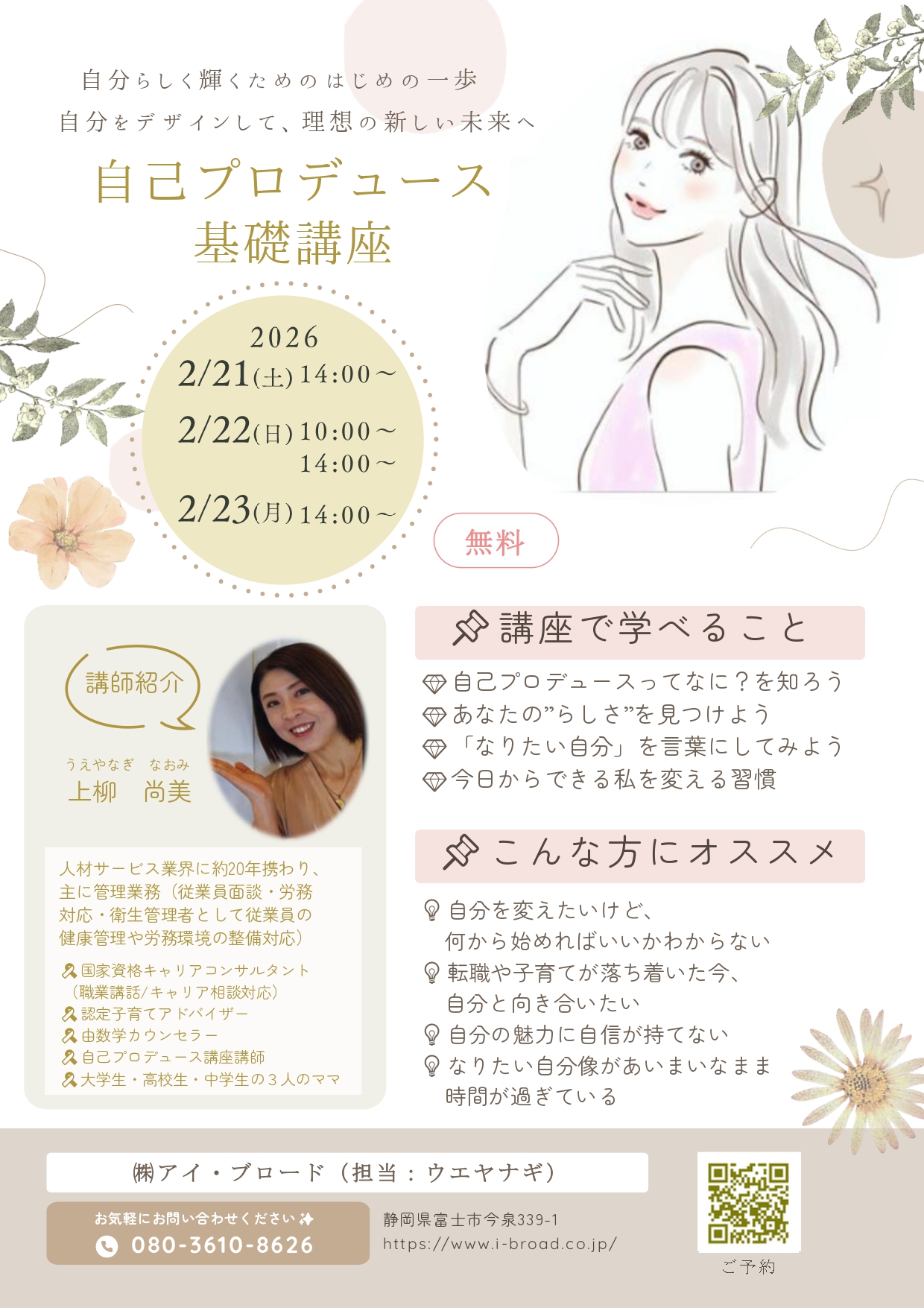 ☆【開催のお知らせ】自己プロデュース基礎講座☆2026年02月17日更新
